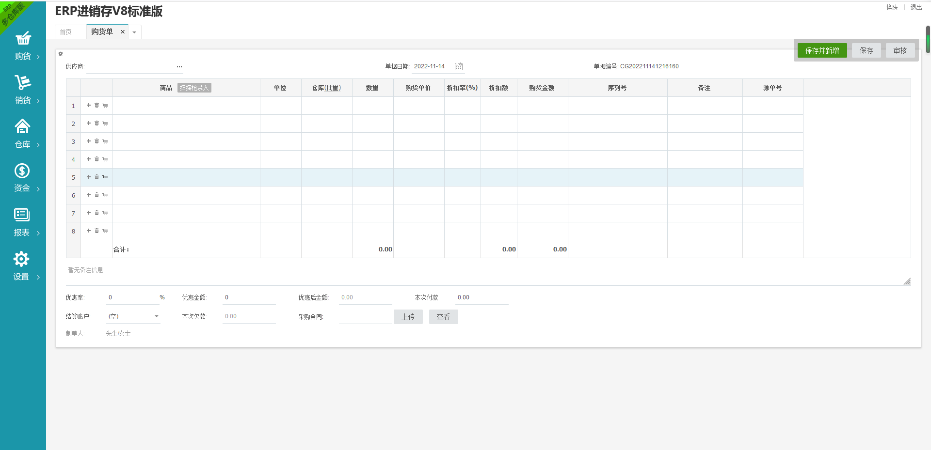 所有单据均支持上传附件功能;且报价单、销售合同、采购订单、发货出库、入库单、派工单等所有模板均支持自定义编辑打印。